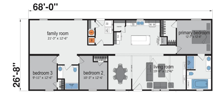 At 68 feet wide, The Cornerstone is a thoughtfully designed single-level home that blends open living with smartly defined spaces. With three bedrooms and multiple gathering areas, this plan delivers comfort, flexibility, and everyday functionality in a beautifully efficient footprint.